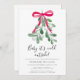 Convide familiares e amigos para o seu Chá de fraldas de Natal com este convite festivo. É decorado com uma mistura verde-aquática, uma fita vermelha, e diz "Baby It's Cold Outside!" na tipografia de na moda. Facilmente personalizável. Original Watercolor © Michele Davies.