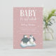 Cartão de chá de fraldas de inverno bonito com ilustração de pinguins em um icebergue. O texto no topo diz "bebê está frio lá fora." Perfeito para o chá de uma garota.