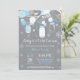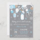 Bebê é Frio Fora do Convite para Chá de fraldas de Mason Jar de inverno. Convite para Chás de fraldas de Menino ou Menina. Flocos de neve azuis e brancos. Pote de vidro Mason. Flores Florais. Luzes de Corda. Fundo das cinzas. Para mais personalização, clique no botão "Personalizar" e use nossa ferramenta de design para modificar este modelo.