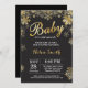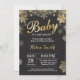 Bebê é Frio Fora do Inverno Dourado convite ao Chá de fraldas. Floco de neve Dourado e branco. Convite para Chás de fraldas de Menino ou Menina. Convite para Chá de fraldas de férias de inverno. Fundo Negro. Para mais personalização, clique no botão "Personalizar" e use nossa ferramenta de design para modificar este modelo.