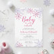 Querida, está frio fora do Chá de fraldas de inverno. Este convite é perfeito para chás de fraldas de inverno. O esquema de cores é muito giro em rosa e roxo com algum design de texto dourado/brilho. Convite de chá de fraldas rosa e roxo com flocos de neve fofos. Ilustração digital de Kristine Lee. Para obter mais informações, visite www.kristineleedesigns.com