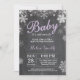 Bebê é o convite do Chá de fraldas Frio Fora do Inverno. Floco de neve roxo e branco. Convite para Chás de fraldas. Convite para Chá de fraldas de férias de inverno. Fundo Chalkboard. Para mais personalização, clique no botão "Personalizar" e use nossa ferramenta de design para modificar este modelo.