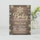 Bebê É Frio Fora Do Convite Russo De Chá de fraldas De Inverno. Convite para Chás de fraldas de Menino ou Menina. Convite para Chá de fraldas de férias de inverno. Flocos de neve amarelos e brancos. Fundo Rustic Wood. Retro de Vintagem do País. Para mais personalização, clique no botão "Personalizar" e use nossa ferramenta de design para modificar este modelo.