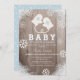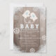 Este cartão de convite virtual/zoom/online para o "bebê, está frio lá fora", bonito e rústico, apresenta um fundo de madeira rústica com luvas brancas, flocos de neve brancos e neve nos cantos. O verso apresenta fundo azul-bebê com padrões brancos de neve. Perfeito para chás de inverno. Personalize-o para as suas necessidades. Você pode encontrar mais produtos para urso polar na minha loja.