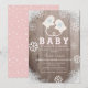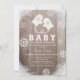 Este cartão de convite virtual/zoom/online de chá de fraldas "baby, está frio lá fora", giro e rústico, apresenta um fundo de madeira rústica com luvas brancas, flocos de neve brancos e neve nos cantos. O verso apresenta um fundo cor-de-rosa para bebês com padrões brancos de neve. Perfeito para chás de inverno. Personalize-o para as suas necessidades. Você pode encontrar mais produtos para urso polar na minha loja.