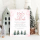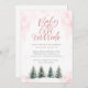 Este Convite para Chá de fraldas apresenta uma ilustração aquosa de pinheiros e um fundo cor-de-rosa floco de neve, com o popular ditado "Bebê é Frio Lá Fora". Personalize-o com os detalhes do evento. Um belo convite, perfeito para o seu evento!