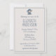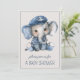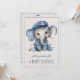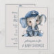 Este convite de chá de bebê para meninho apresenta um adorável bebê elefante vestido com uma camisa listrada azul náutico e branca com um boné de âncora. Personalize a frente e o verso com a sua escolha de texto especial.