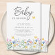 Você está planejando um chá de fraldas exclusivo? Este charmoso convite floral inclui flores silvestres e borboletas amarelas. Sua tipografia com na moda diz "Baby in Bloom". Adequado para um chá de fraldas neutro em termos de gênero. Facilmente personalizável. Original Watercolor © Michele Davies.