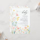 Uma ilustração encantadora de aquarela com minúsculas flores silvestres em um estilo bonito e adorável decora este convite de chá para menina que é perfeito para uma celebração de primavera ou verão. Flores cor-de-rosa e cor-de-rosa se entrelaçam com pastéis delicados, para um suave e doce convite para celebrar a chegada da sua pequena flor silvestre no caminho.