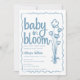 Bebê em Bloom Whimsical Mão Desenhada Chá de fraldas Blue Boy Convite