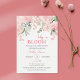 Este convite moderno e delicado é perfeito para um Chá de fraldas temático "florescente". Ele apresenta uma ilustração botânica floral de cor d'água em cascata a partir do topo com as informações de evento a seguir. Este design é excelente para uma mãe esperar uma menina. A paleta de cores é quente e doce e vai combinar com suprimentos de festas convencionais.