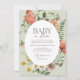 Convide amigos e família para comemorar a chegada de um doce bebê com este elegante convite para o chá de fraldas de flor selvagem primavera, que inclui flores silvestres a aquarela em tons pastel mudados.