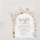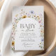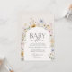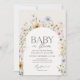 Convide amigos e família para comemorar a chegada de um doce bebê com este elegante convite para o chá de fraldas de flor selvagem primavera, que inclui flores silvestres a aquarela em tons pastel mudados.