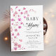 Uma ilustração encantadora de aquarela com flores silvestres rosa e fuchsia em um estilo bonito e adorável decora este convite de chá para menina que é perfeito para uma celebração de primavera ou verão. Flores cor-de-rosa e cor-de-rosa se entrelaçam para formar um quadro de arco, para um suave e doce convite para celebrar a chegada da sua pequena flor selvagem no caminho.