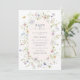 Celebrar a futura mãe com este belo convite para chás de fraldas florais que inclui um quadro oval de flor silvestre de aquarela com flores silvestres delicadas, cor amarela, azul e púrpura, cor rosa.