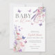 Este convite para chás de fraldas bonito e elegante apresenta flores silvestres e borboletas e pode ser personalizado com todas as suas informações especiais de celebração, com o código QR do registro e os detalhes do evento no verso. Projetado por Thisnotme©
