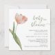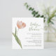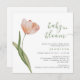 Um convite para chás de fraldas com neutralidade de gênero bonito apresenta um solteiro de uma tulipa de pêssego embaçada. Baby In Bloom em um roteiro manuscrito verde. Personalize os principais detalhes, como a mãe, para que seja nome, data e hora do evento, local, RSVP e informações de registro.