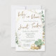 Um bebê florescendo! Este convite verde e dourado, neutro em termos de gênero, é perfeito para dar o tom ao seu evento!