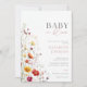 Este convite de baby shower bonito e elegante apresenta flores silvestres e pode ser personalizado com todas as informações da sua celebração especial, com o código QR do seu registro e detalhes do evento no verso. Criado por Thisisnotme©