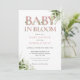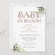 Bebê em chá de fraldas florescente com elegante tipografia rosa-rosa poeirenta e bonito folhagem botânica verde. Projetado por Thisnotme©