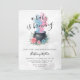 Tema do chá de fraldas "A Baby Is Brewing" com um caldeirão mágico com fumos cor-de-rosa e azuis e flores à sua volta sobre fundo branco turvo Perfeito uma festa de chá de fraldas halloween neutra em termos de gênero. Você pode personalizar isso facilmente com seus detalhes.