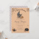 Um design de chá de fraldas neutro em tinta preta, desenhado à mão, "A Baby is Brewing". Possui uma antiga carruagem para bebês, corvo preto, caldeirão borbulhante, chapéu de bruxa, abóboras e teias de aranha sobre um elegante fundo laranja. As costas apresentam um padrão de gingham roxo e laranja giro.