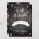 A design apresenta fundo de madeira rústico com o texto Bebê está frio lá fora, flocos de neve rosa ilustrados e pinhões. A design é perfeita para combinar com um banho de bebê maravilhoso de inverno para uma garotinha!