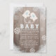 Este cartão de convite para chás de fraldas guiado por drive-thru "baby, está frio lá fora", bonito e rústico, apresenta um fundo de madeira rústica com um par de luvas brancas, flocos de neve brancos e neve nos cantos. O verso apresenta fundo azul-bebê com padrões brancos de neve. Perfeito para chás de inverno. Personalize-o para as suas necessidades. Você pode encontrar mais produtos para urso polar na minha loja.