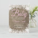 Bebê Está Frio Fora Do Chá de fraldas De Floco De Neve De Inverno. Convite De Chá de fraldas.Rosa. Chá de fraldas De Feriado De Inverno Convide. Flocos de neve brancos. Fundo Burlap. Campo de Vintage Retro Barn.