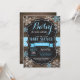 Bebê É Frio Fora Do Convite Para Chá de fraldas De Inverno. Convite para Chás de fraldas de Menino ou Menina. Convite para Chá de fraldas de férias de inverno. Flocos de neve azuis e brancos. Fundo Rustic Wood and Chalkboard. Para mais personalização, clique no botão "Personalizar" e use nossa ferramenta de design para modificar este modelo.