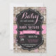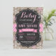 Bebê É Frio Fora Do Convite Ao Chá de fraldas De Inverno. Convite para Chás de fraldas de Menina ou Menina. Chá de fraldas De Feriado De Inverno Convide. Flocos de neve rosa e branco. Fundo Rustic Wood and Chalkboard.