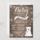 O Bebê Está Frio Fora Do Urso Polar, Convite Para Chá de fraldas De Winter Boy. Convite para Chás de fraldas de Menina ou Menina. Chá de fraldas De Feriado De Inverno Convide. Fundo Da Madeira Rústica. Retro De Vintagem Do País. Flocos de neve brancos. Snowman e Chalkboard Background.