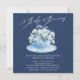 Na moda Baby está preparando um design de chá de bebê com uma xícara azul clara cheia de um buquê de flores azuis e brancas de cor d'água colocadas sobre um dorso azul escuro. Sacudir nosso design para ver uma floral coordenada de volta para um toque especial extra. Visite nosso compro para ver nossa coleção de chá.