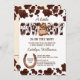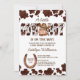 Pequeno vaqueiro no caminho de um cavalo bebê fofo padrão de vaca em um convite de chá de fraldas ocidental editável para download digital instantâneo de modelo.
