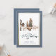 Este Cartões de foto de Natal tradicional apresenta uma imagem nativa do bebê Jesus dormindo em uma mangueira com Maria e José no centro. A borda externa da placa tem uma borda azul com uma estrutura falsa em ouro. Abaixo estão as palavras "Feliz Natal". Você pode personalizar com seu nome. No verso você pode adicionar sua escritura favorita de Natal.