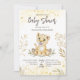 Leão de bebê modelo de convite para chá de fraldas marrom de ouro amarelo.