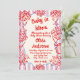 Se você estiver procurando um elegante convite de chá de fraldas exclusivo e personalizável, isso é perfeito para você. Como podem ver, ele apresenta um roteiro manuscrito e buquês de flores desenhados à mão em ambos os lados. E borda ondulada azul de armação e listras púrpuras de cor d'água. Tudo em vermelho magenta sobre fundo creme pálido. Muito fácil de personalizar e usar. Então pegue e masculine seus convites muito comprometidos.