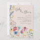 Convite para chás de fraldas de flor selvagem com flores silvestres de cor d'água. Esta design botânica russa tem uma bonito fronteira de flores silvestres, incluindo a margarida-de-papoila-dormideira, a cabeça-seca e o trevo. Uma floral moderna elegante com tema de jardim boêmico e feminino. Por favor, navegue na minha loja na coleção Charm de Flor Selvagem, para obter itens correspondentes.