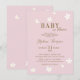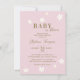 Um convite fofo, doce e na moda para uma festa de chá de fraldas de menina com um tema de "bebê em flor". O fundo rosa-pincelado-primavera é texturizado e em camadas com um padrão floral doce de margaridas brancas e amarelas. A parte traseira é colocada com a textura simples, cor-de-rosa, e as margaridas.