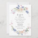 Celebre a mamãe! Este convite para chás de fraldas apresenta uma camada aquosa de flores rosa e roxas. Personalize com suas informações ou clique em "Clique para personalizar mais" para editar estilos de fonte, tamanho e cores.