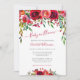 Este belo bebê floral no convite para chás apresenta flores cor-de-água rosa e vermelha e folhagem verde. Fácil de personalizar clicando em "Personalizar".