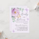 Um fundo de cor lilás macio. Decorados com um rosa lilás, roxo e eucalipto verde e borboletas, de cor aquosa. Personalize e adicione um nome e detalhes da parte. Texto: Bebê em Bloom.