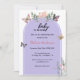 Celebre a chegada de um pequeno com este charmoso convite para chá de fraldas "Baby in Bloom". Com tons de lavanda macios, borboletas brancas e delicados florais de aquarela, esse design expele uma sensação feminina e elegante - perfeita para um chá de fraldas de jardim ou primavera. Personalize com o nome da futura mãe, os detalhes do evento e as informações de RSVP. Uma bela maneira de reunir os entes queridos em homenagem a este momento especial.