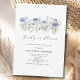 Bebê no convite de chá de fraldas floral azul. Fácil de mudar o texto. Bonito floral de aquarela para chá de fraldas de verão.