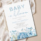 Bebê no convite de chá de fraldas de Bloom Blue Flóral Boy. Fácil de mudar o texto. Bonito floral de aquarela.