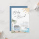 O bebê no chá de fraldas conselho convida. surfista garoto. surf. praia. ônibus vintage
