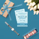 Espessura de 18 pt / Gramatura de 120 lb. Branco suave, textura delicada.