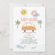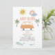 Este belo convite para chás de fraldas de menina "baby on conselho" apresenta um sol sorridente, um arco-íris com nuvens, um prato de surfe em uma van/camper laranja, palmeiras, e uma mãe e uma baleia bebê em ondas azuis. O verso apresenta um fundo vermelho/rosa claro de salmão com padrões de ondas brancas. Personalize-o para as suas necessidades. Você pode encontrar produtos correspondentes na minha loja.