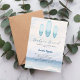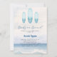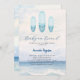 Um convite elegante para um Chá de fraldas. Ondas oceânicas de cor aquática e três pranchas de surfe.