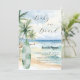 Um convite elegante para um Chá de fraldas. Uma praia arenosa de cor aquática, ondas oceânicas e palmeiras como fundo, e uma prancha verde neutra em termos de gênero na praia.